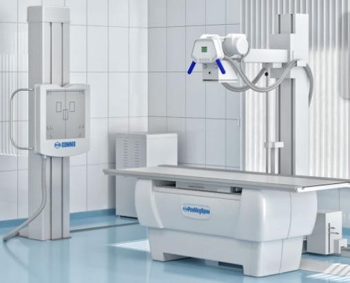 Багатофункціональна рентгенографічна система з пласкопанельним цифровим детектором 43х43 см, призначена для рентгенографії черепа, абдомінальної частини, грудної клітини, кінцівок і т.д.